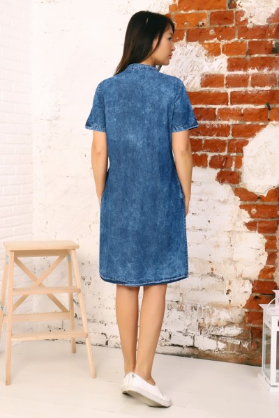 Особенности: Платье со стойкой, фигурной планкой по груди, рельефами, боковыми карманами и коротким рукавом с патами.
