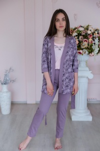 Комплект женский "Птички" кулирка (цвет сиреневый)